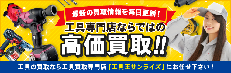 お客様から買取させていただいたインパクトドライバ、丸ノコ、その他工具アイテムをご紹介いたします。こんな工具アイテム、自宅に眠らせていませんか? 使わない工具があればお気軽に工具買取専門店「工具王サンライズ」にお売り下さい!